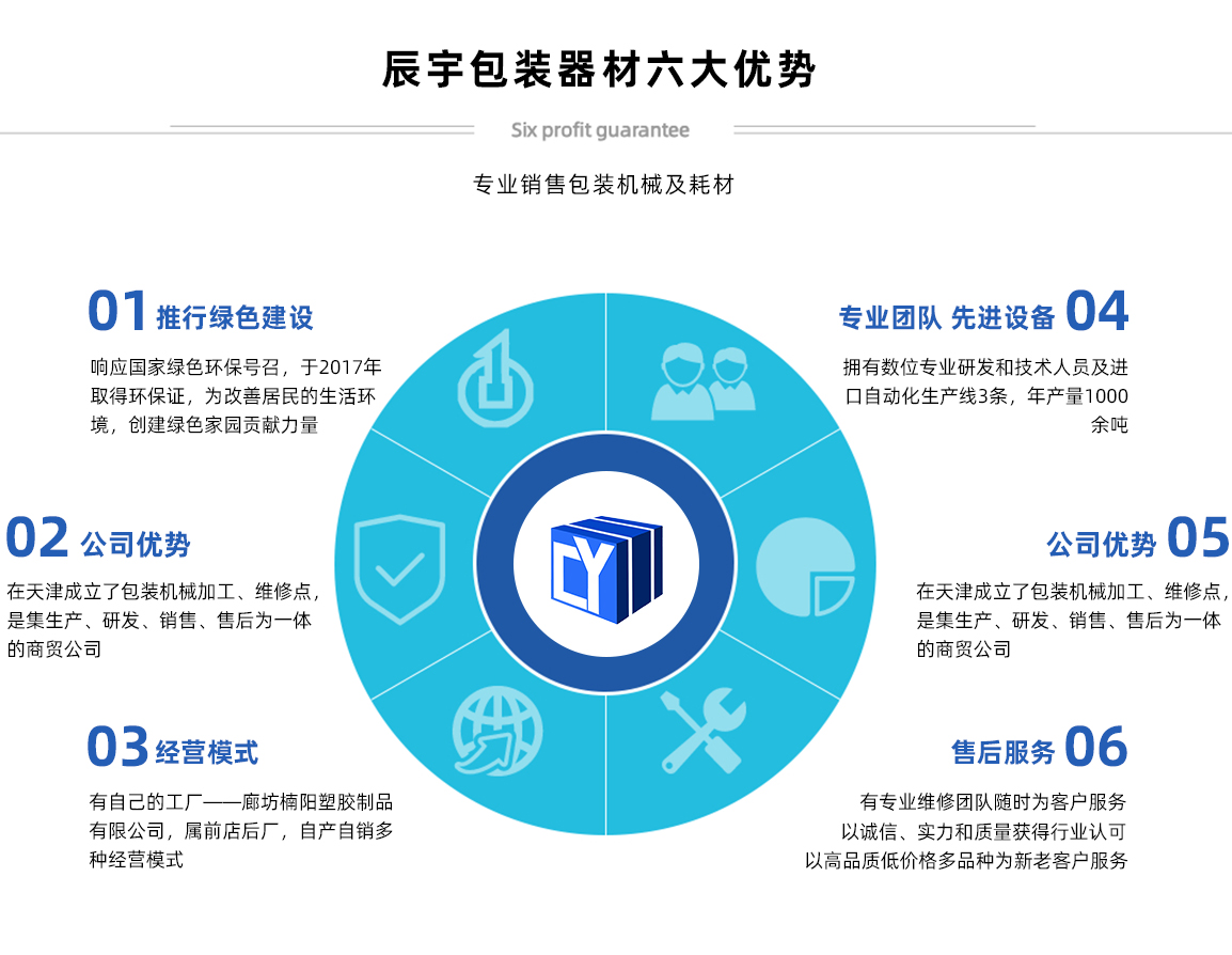 天津辰宇包裝器材有限公司原天津市辰宇商貿(mào)有限公司,位于天津市南開區(qū)密云一支路新南馬路五金城二區(qū)33棟106號,本公司主要經(jīng)營:打包帶,打包機(jī)系列,封箱機(jī)系列,纏繞機(jī)系列,拉伸膜,膠帶,尼龍繩,其他包裝耗材等產(chǎn)品 公司產(chǎn)品質(zhì)優(yōu)價(jià)廉,暢銷全國各大城市。同等質(zhì)量比價(jià)格,同等價(jià)格比質(zhì)量,我們確保質(zhì)量,價(jià)錢合理,交貨迅速及時(shí)。公司始終秉承“精益求精,鑄造品質(zhì)的典范”的經(jīng)營理念,真誠為廣大客戶提供真誠的服務(wù)! 天津市辰宇包裝器材有限公司,感謝廣大新老客戶的鼎力支持,竭誠歡迎社會(huì)各界朋友前來洽談業(yè)務(wù),愿真誠合作攜手共創(chuàng)美好未來!